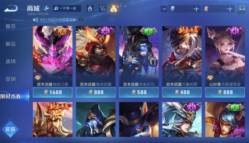 这里娜娜也建议那些限时点券还没用的小伙伴,也别急着用,反正都等这么久了,还不如一直留到9月14日清零前再用,万一后面真继续送呢?那就有希望白嫖到1款传说皮肤哦,毕竟商城中的史诗皮肤,除西施的织梦人是限定外,其他都是非限定,都有机会进碎片商城白嫖。