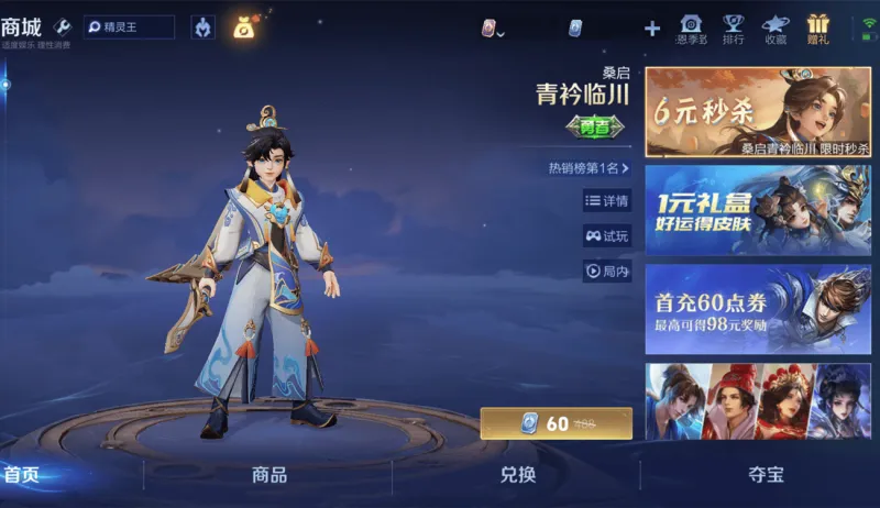 同时桑启的勇者皮肤青衿临川将于9月10日结束60点券秒杀活动,然后9月11日以488点券的价格上架商城,大家一定要在秒杀活动结束前用60点券购买,不用等后面不知道什么时候才能进碎片商城,60点券和48个皮肤碎片,用60点券购买的性价比更高。